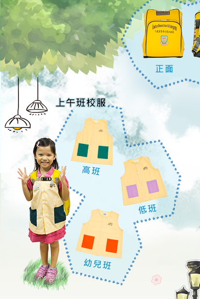 本園只售賣書包和圍裙校服,如需購買運動服請自行聯絡「金洋校服公司」。