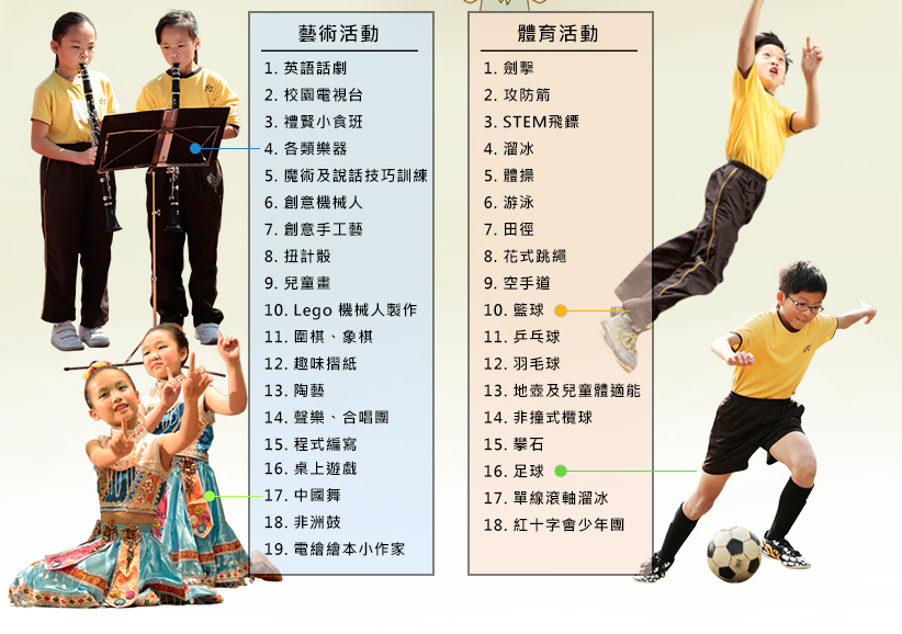 星期二: P.1-3 (藝術活動) P.4-6 (體育活動)
