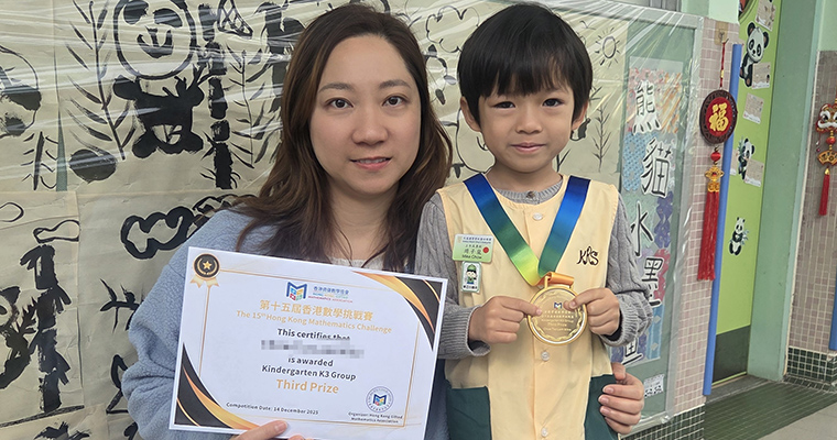 | ▲周同學榮獲The 15th Hong Kong Mathematics Challenge, Kindergarten K3 Group, Third Prize。 |